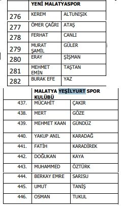 Soruşturma kapsamında, Yeni Malatyaspor’dan 7, Malatya Yeşilyurtspor’dan ise 9 futbolcu PFDK’ya sevk edilenler arasında yer aldı.