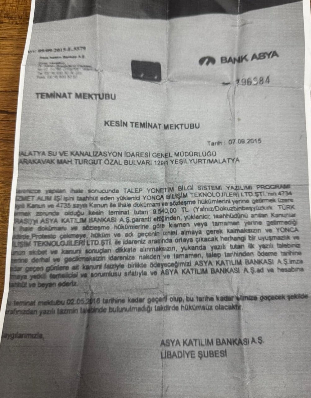 Malatya’da MASKİ’nin geçmiş dönem bilişim ihaleleriyle ilgili yeni iddialar kamuoyunda tartışma yarattı. 07.09.2015 tarihli Bank Asya kesin teminat mektubu üzerinden başlayan tartışma, kurumda geçmiş yıllarda görev yapan yöneticilerin sorumlulukları ve 2024 sonrası yapılan yeni görevlendirmelerle ilgili soru işaretlerini gündeme taşıdı.
