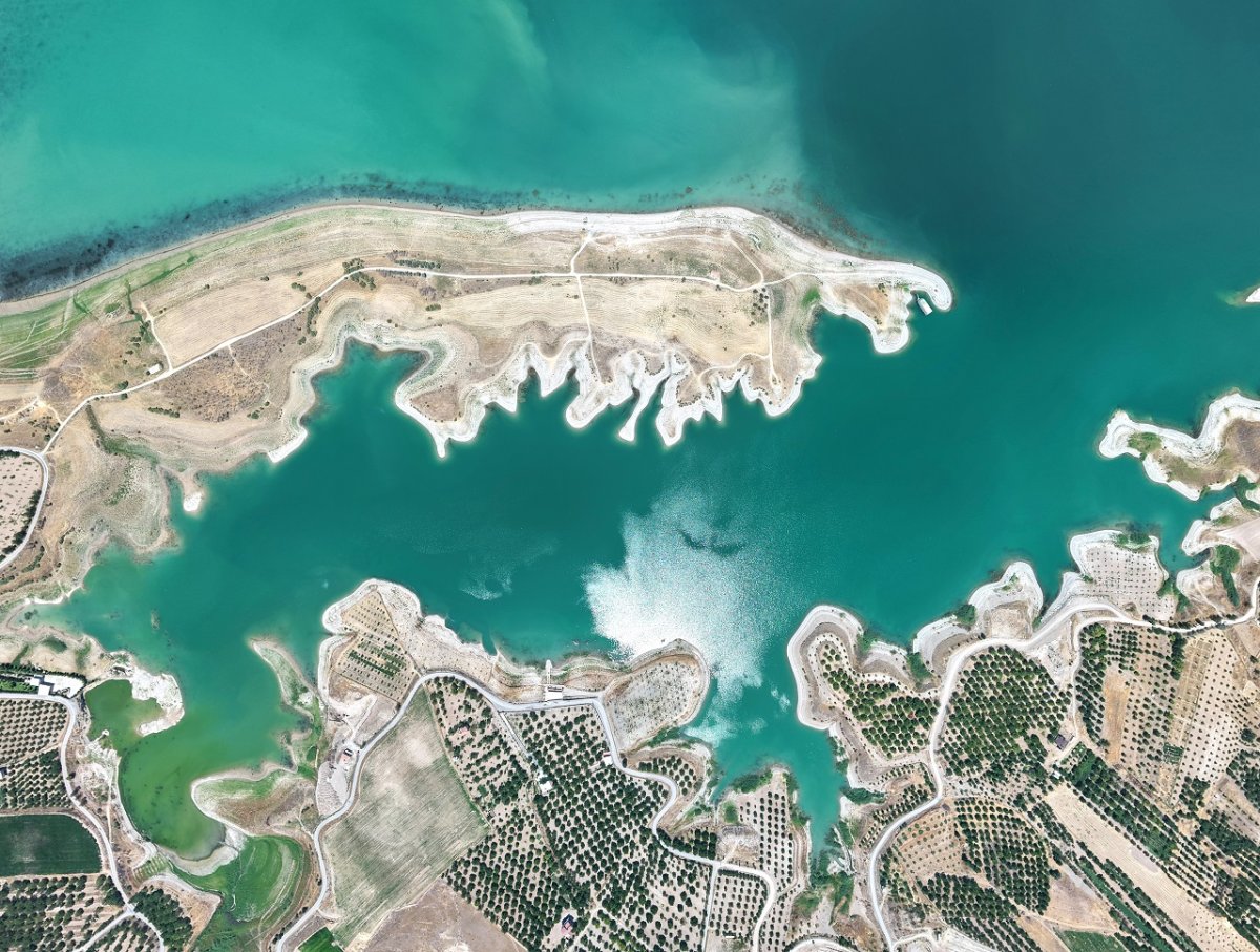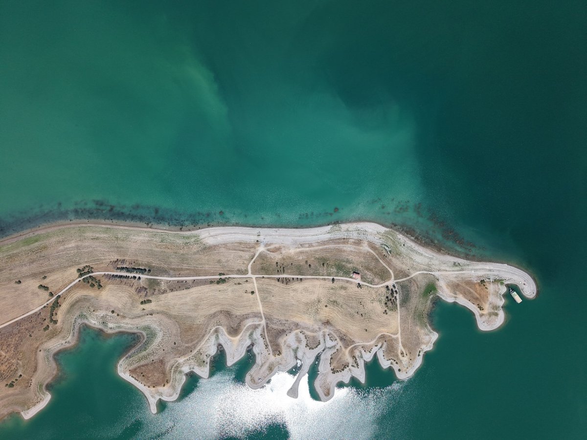 Su havzası Diyarbakır, Elazığ ve Malatya'ya kadar uzanan barajın Malatya kesimindeki su çekilmesi dronla görüntülendi.